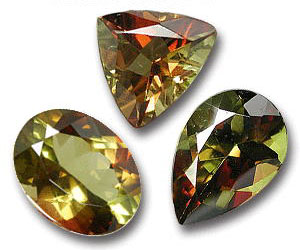 多色性を持った宝石で、石を光に透かすと方向によって、紅色・褐色・緑色・黄褐色・黄緑色などに変化する性質があります