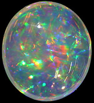 7色に輝く虹色効果が特徴的なオパールは、珪酸ゲルが硬化したもので5~10%の水分を含みます