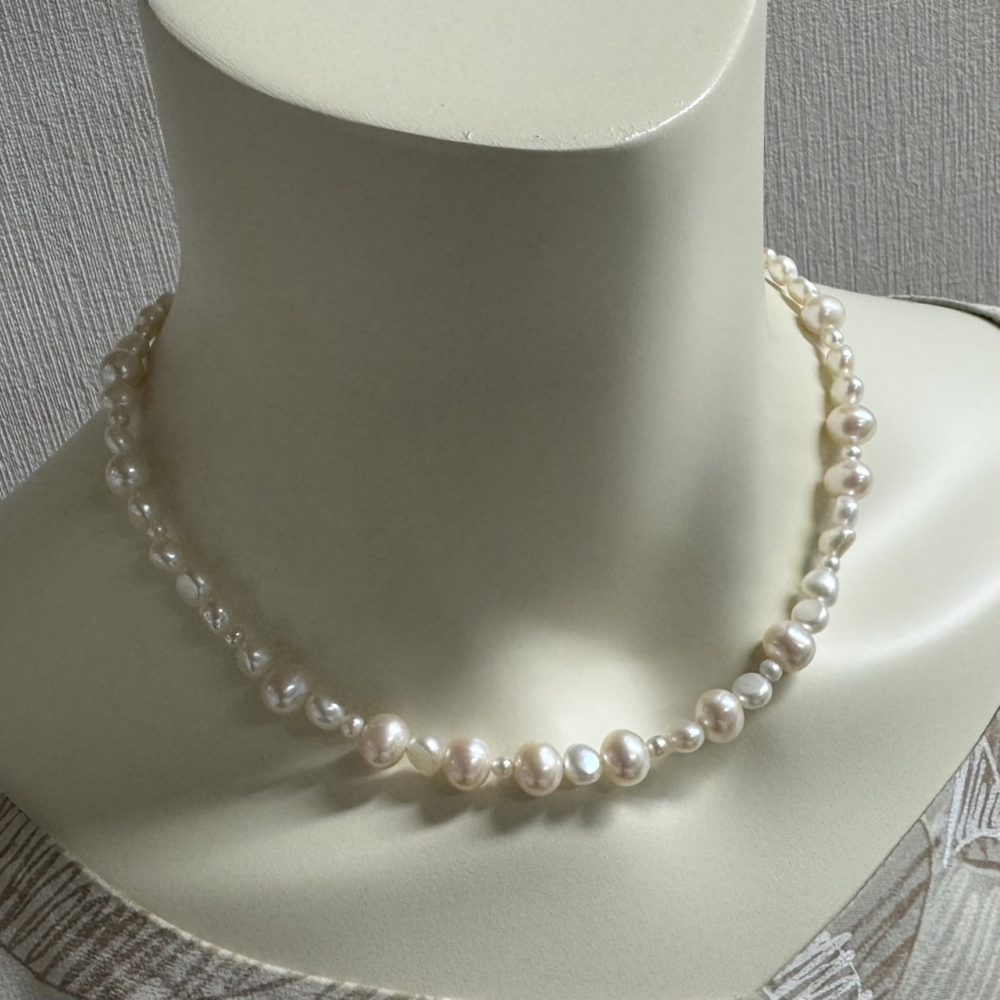 お客様とのイメージを共有させていただき、細部にこだわったバロック淡水のネックレスが出来上がりました。