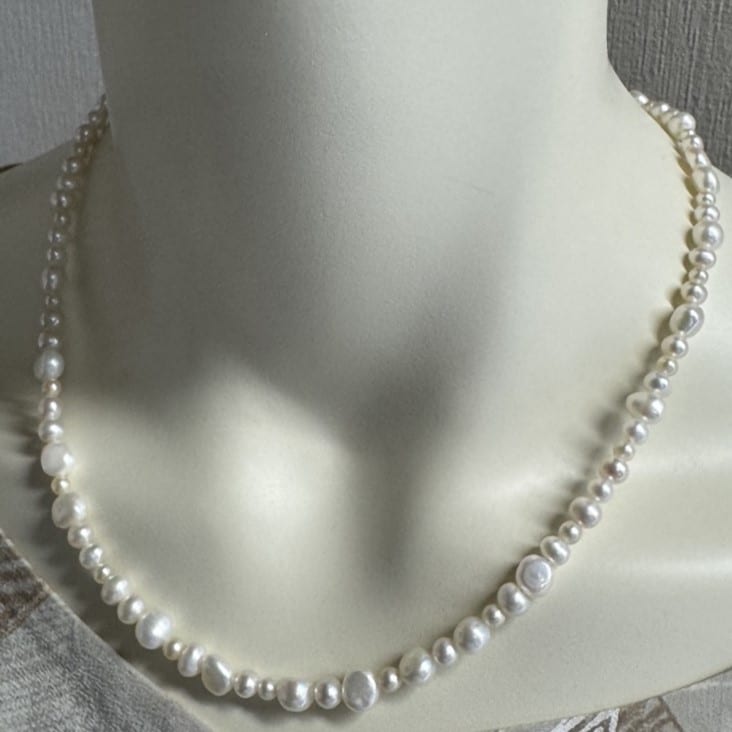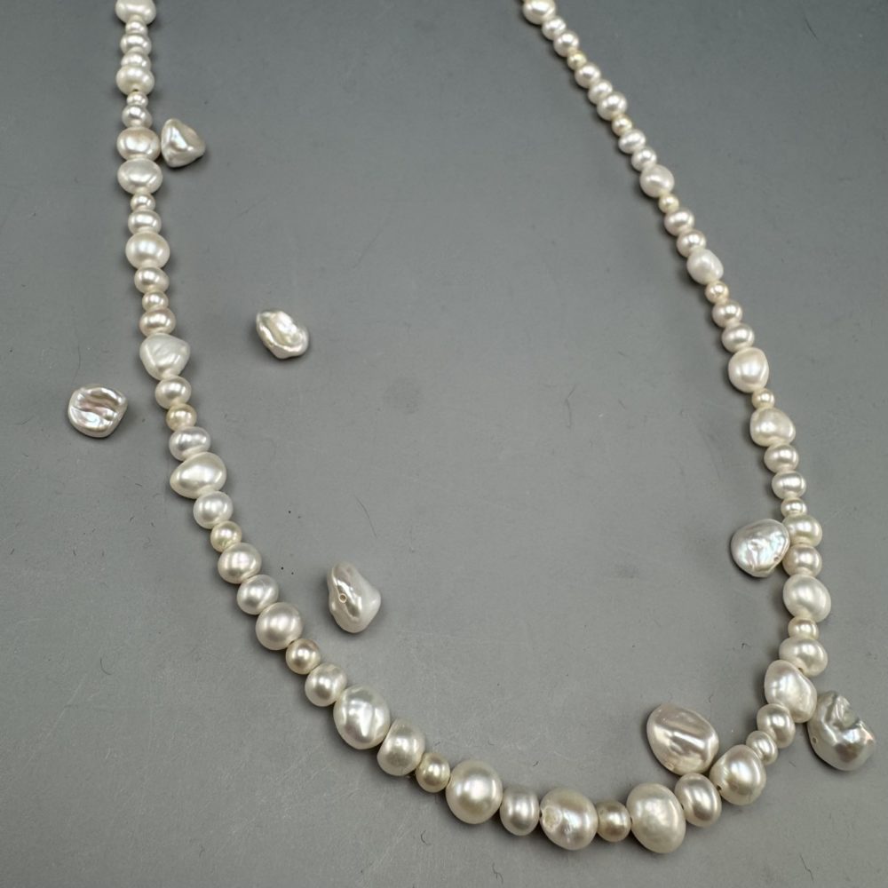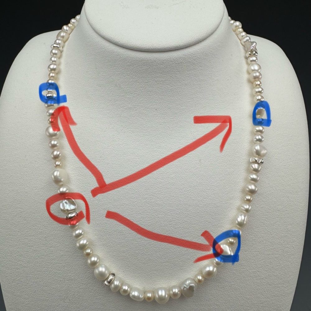 まずは試作として、淡水真珠の形状から2パターンのネックレスを制作