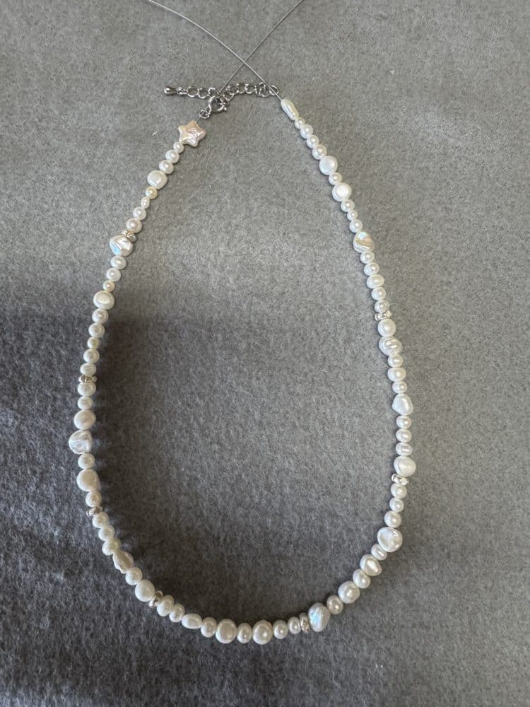 遠目から見るとフォーマルなネックレス、近くで見るとカジュアルなネックレス